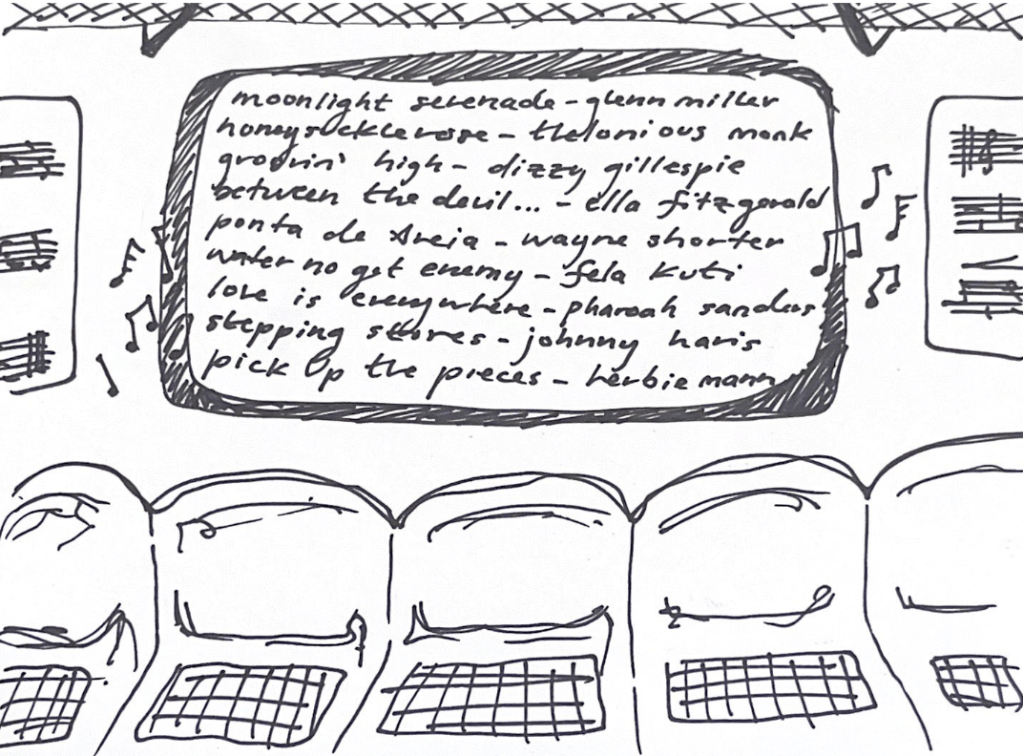 Cafe coda tastes like the last piece of chewing gum I had and the wooly inside of my mouth. I can feel the jazz flood in as the peppermint fades. It takes me away and pushes me down into my seat. It grabs me by the ears and shakes me around. It holds me close and let’s me weep. It takes me by the hand, and leads me onto the blue train of thought I normally can’t see. Through the mist, it’s the fog lights, and I can smell the open road.